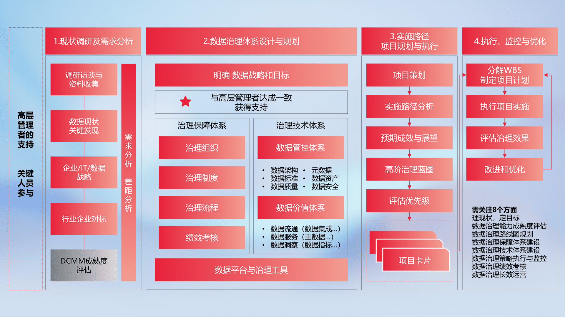 制定并执行统一的数据标准,,,,规范数据定义和格式,,,消除冗余和不一致性,,,,实现跨部门和跨系统的数据一致性,,,为企业提供标准化的数据基础。。。